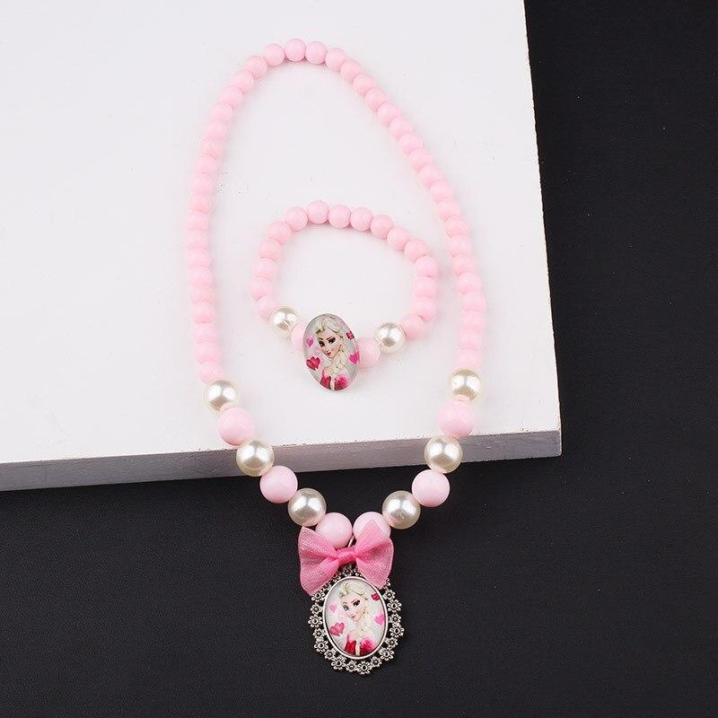 Ist Ihre Tochter ein Fan der Disney-Prinzessinnen? Schenken Sie ihr dieses wunderschöne Set aus Perlenkette und Armband mit einem Anhänger, der mit einem Druck von Prinzessin Elsa oder Prinzessin Sofia verziert ist. Mit diesem funkelnden Schmuckstück für Mädchen wird Ihre Prinzessin schön und strahlend aussehen. Dieses Set passt perfekt zu einem Kleid.