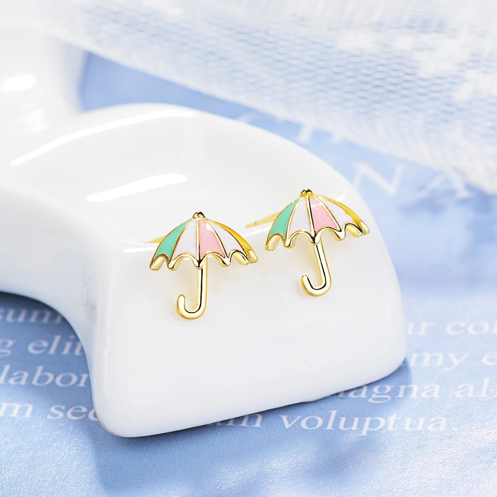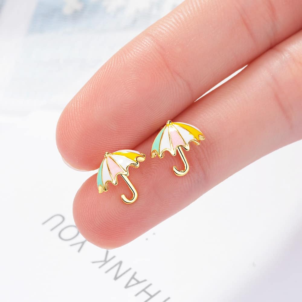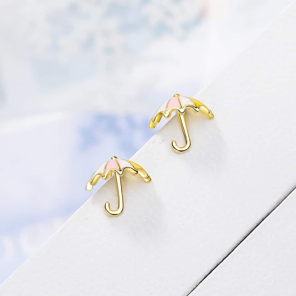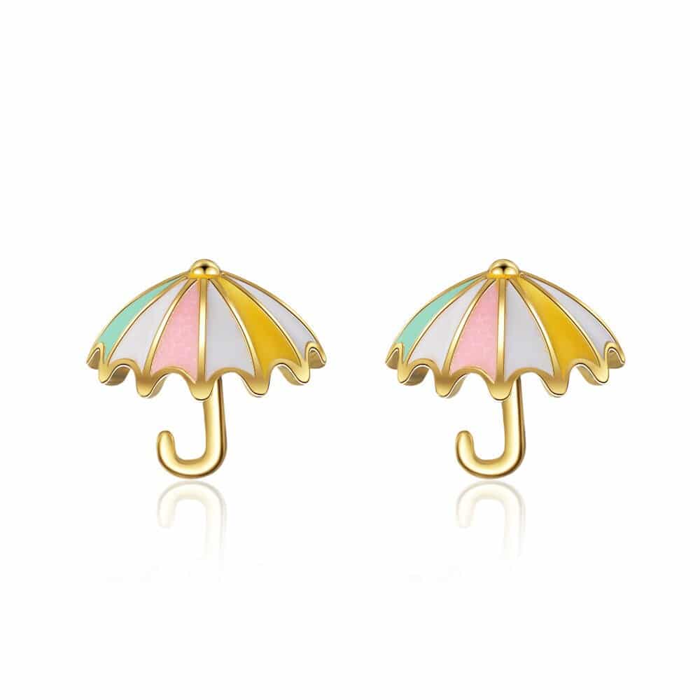 Goldene Regenschirm-Ohrringe für kleine Mädchen