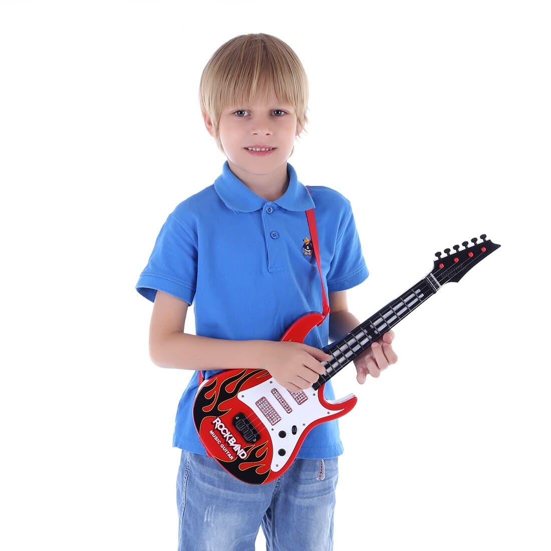 Möchte Ihr Kind Musiker werden? Wie wäre es, wenn Sie seinen Traum wahr werden lassen und ihm diese wunderschöne elektrische Gitarre als Geschenk überreichen? Mit ihrem von professionellen Gitarren inspirierten Design wird sich Ihr Kind wie ein echter Rockstar fühlen, wenn es sie in den Händen hält. Diese Kindergitarre erzeugt außerdem lustige Klänge und blinkt, wenn sie gespielt wird.