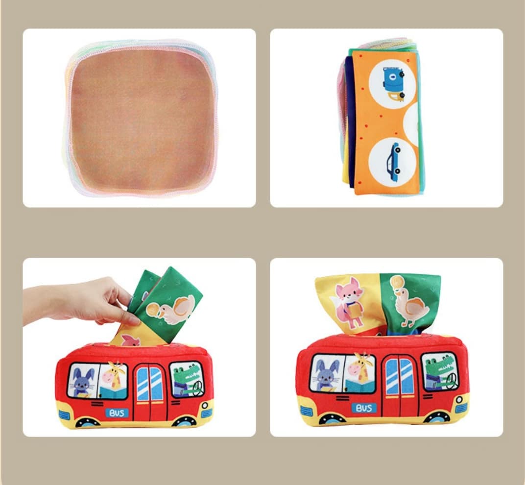 Das Montessori-Sinneserfahrungsspiel Tissue-Box Bus für Babys ist ein wichtiges Hilfsmittel, um Ihrem Kind zu helfen, Fragen zu stellen und Spaß zu haben. Das Spiel wurde von Erziehungsexperten entwickelt, um die Beziehungs-, Raum- und intellektuellen Sinne des Kindes zu stimulieren. Dieses Spielzeug ist sowohl für Babys im Alter von wenigen Monaten als auch für ältere Kinder im Vorschulalter ideal, damit sie die Welt um sich herum entdecken und gleichzeitig ihre handwerklichen Fähigkeiten verbessern können.