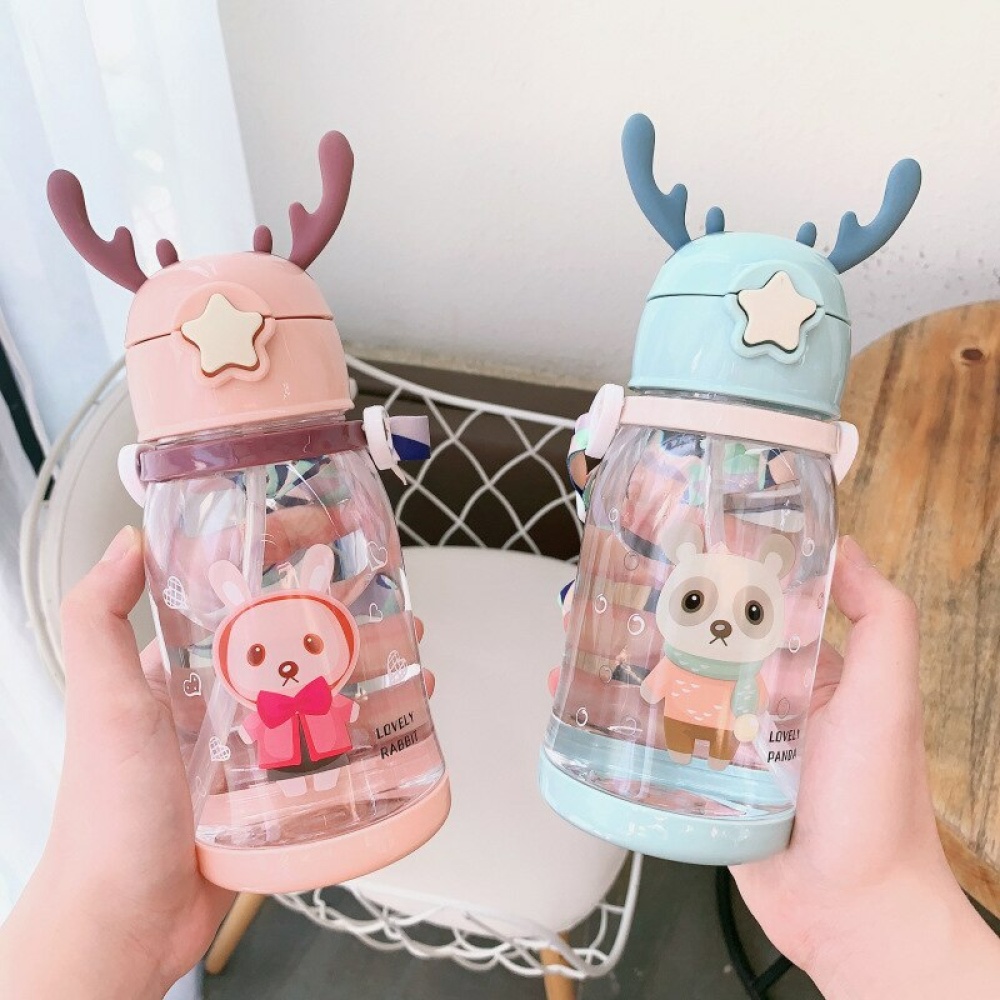 Plastikflasche mit Strohhalm in Form eines Hirsches
