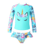 Badeanzug für Mädchen, türkisblau, zweiteilig, mit Oberteil mit langen Ärmeln