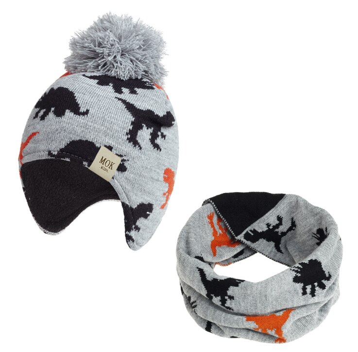 Set aus Mütze und Schal mit Dinosaurier-Motiv für Kinder
